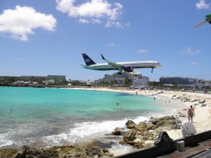 The best part of the tour was Maho Beach. We were fortunate that we got there when the crowds were low. We got a spot at table at the bar to watch the planes come in. Others in our group actually went down to the beach, but one woman quickly discovered this wasn’t a good idea as a plane blew her into the water and her camera was destroyed. Watching the people was more entertaining than the planes.